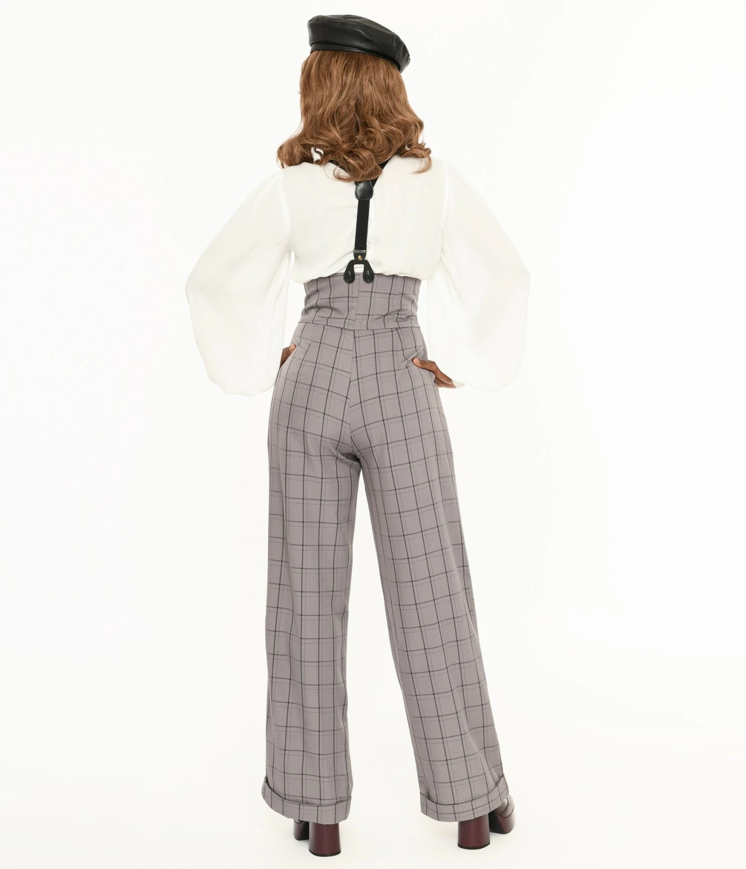 Be the first to review “Unique Vintage Light Grey Windowpane Thelma Suspender Pants” Cancel reply