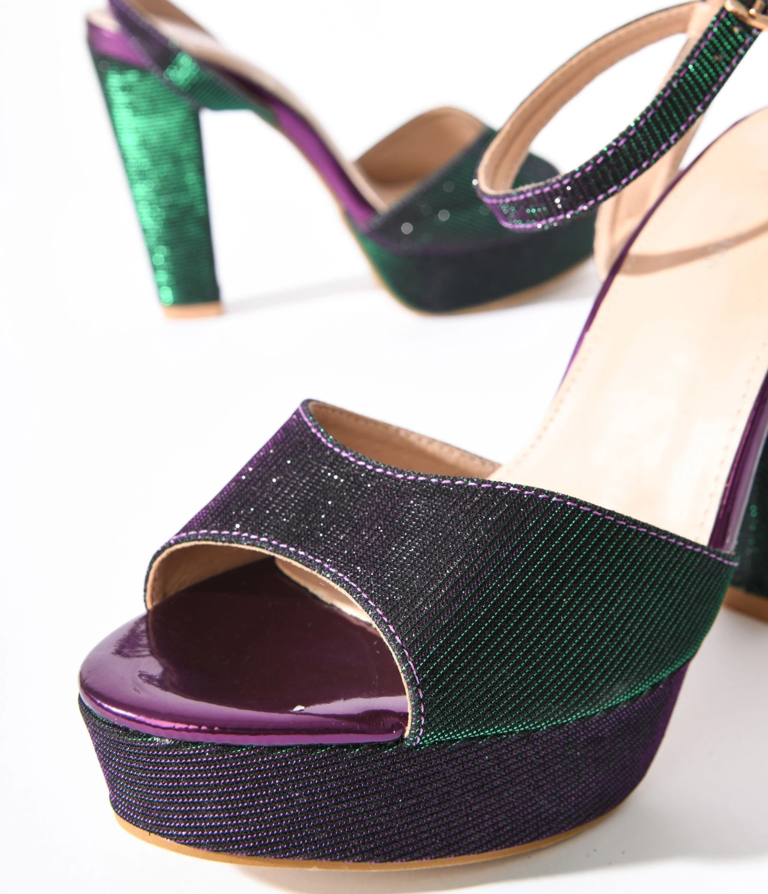 Be the first to review “Unique Vintage Metallic Emerald & Purple Duotone Platform Heels” Cancel reply