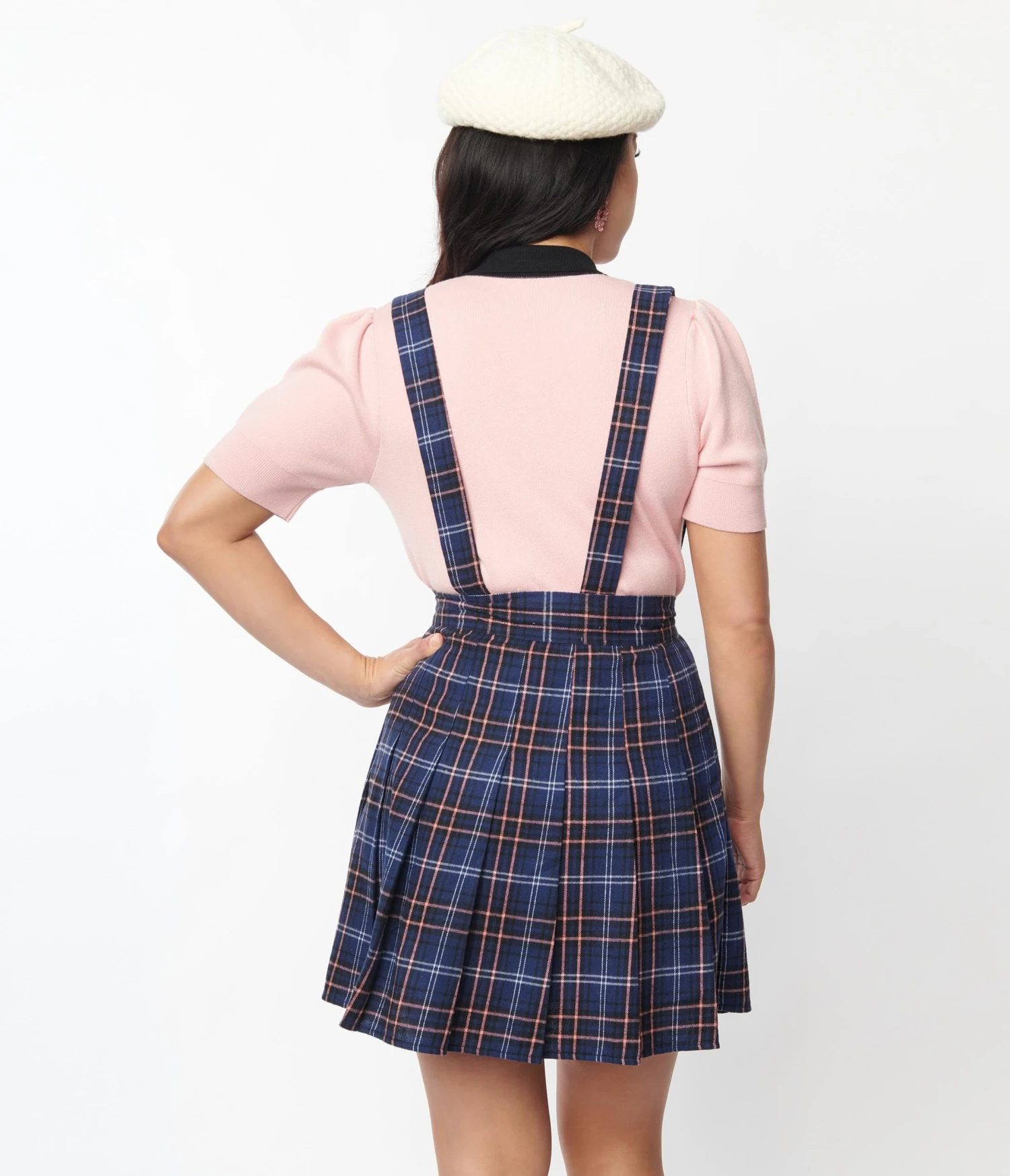 Be the first to review “Unique Vintage Navy Plaid Pleated Suspender Mini Skirt” Cancel reply