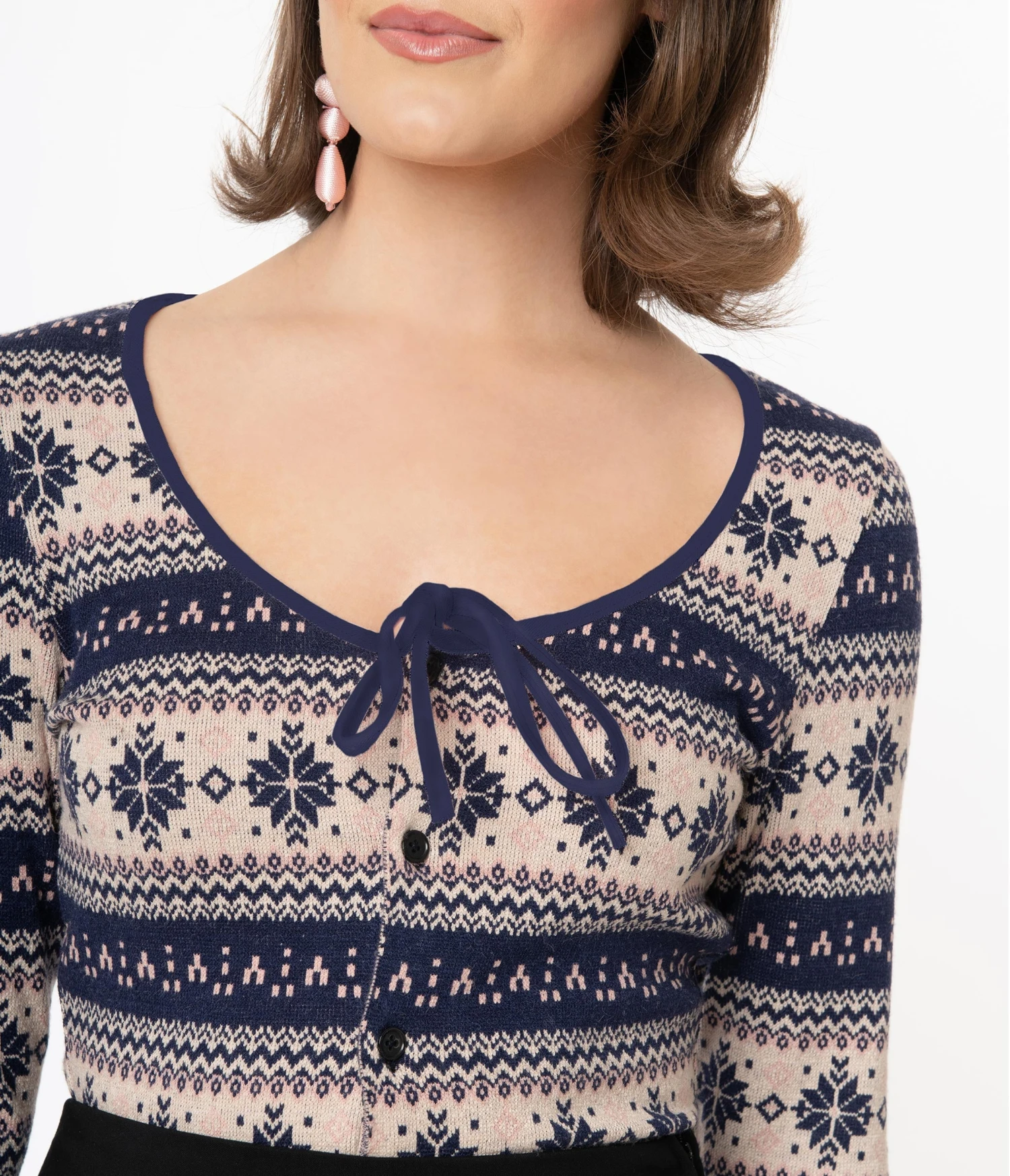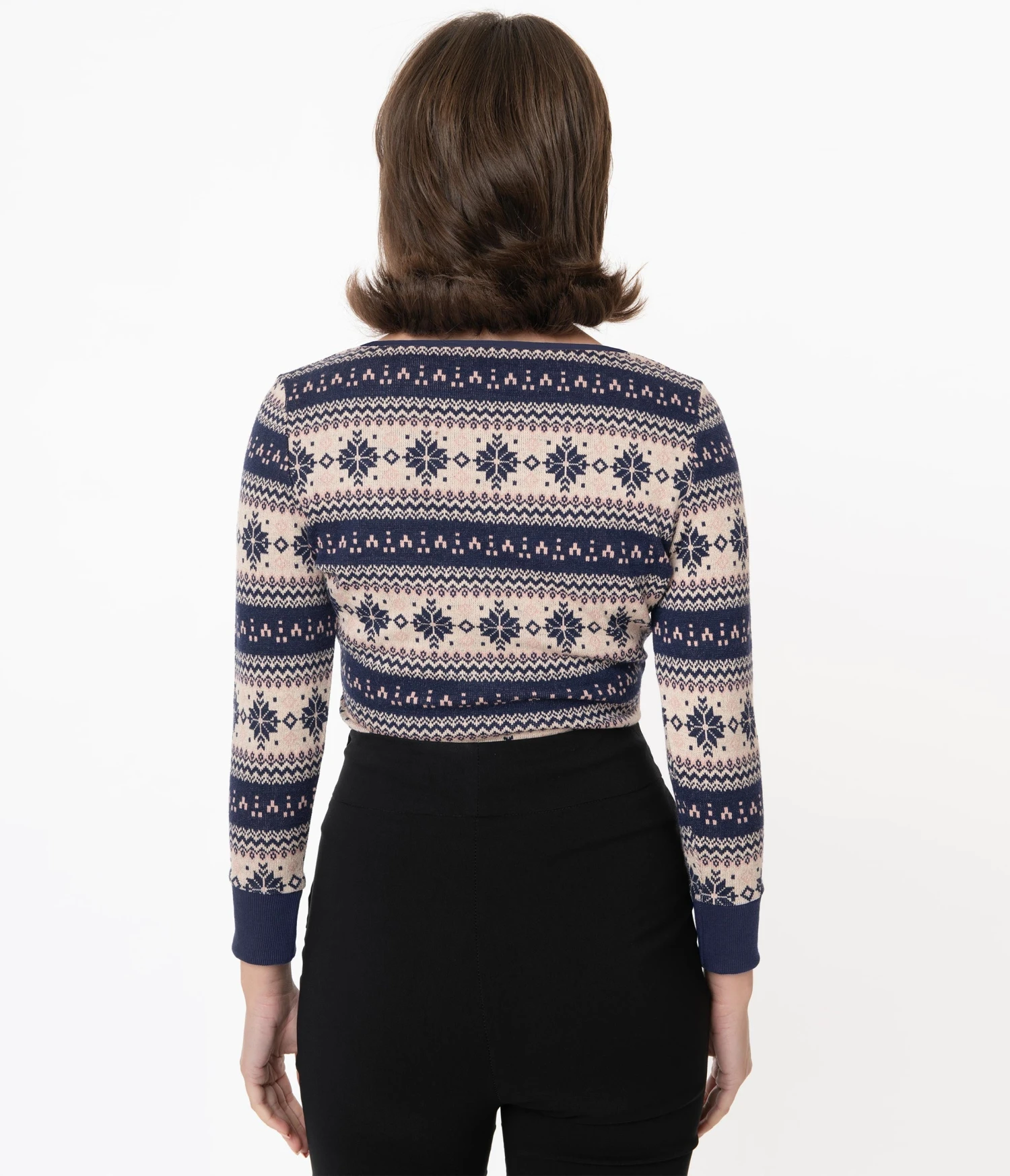 Unique Vintage Navy Snowflake Fair Isle Dandy Cardigan