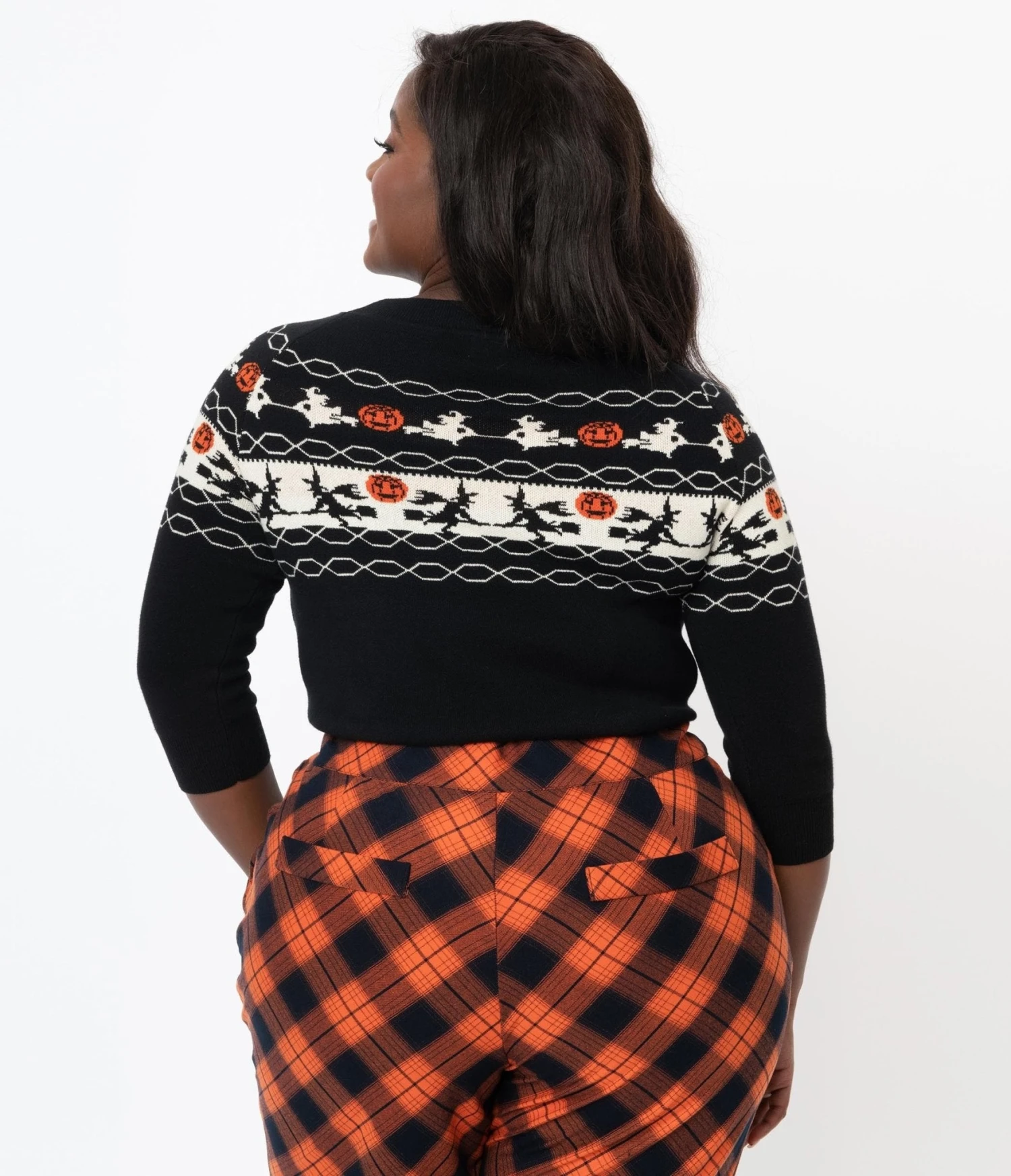 Unique Vintage Plus Size Halloween Witch Pattern Lorelai Sweater