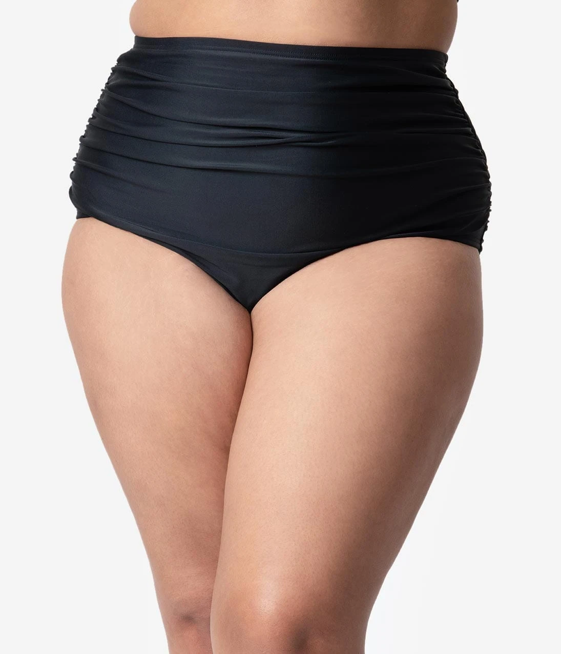 Unique Vintage Plus Size Solid Black Georgiana High Waist Swim Bottoms