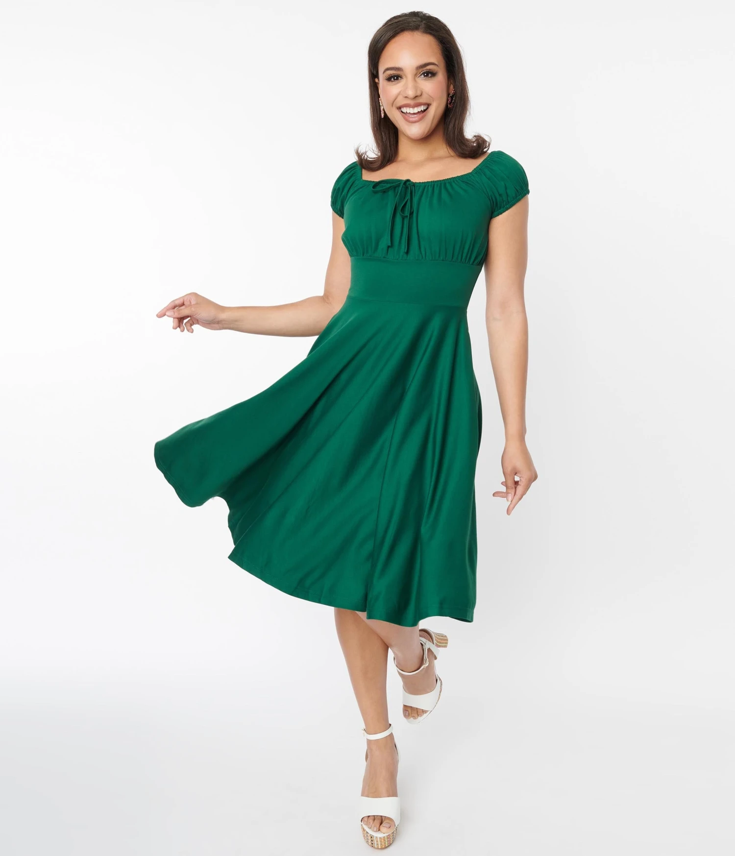 Voodoo Vixen Emerald Green Puff Sleeve Swing Dress