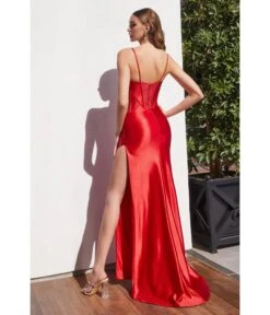 Cinderella Divine Red Satin Strapless Corset Lace Up Back Evening Gown
